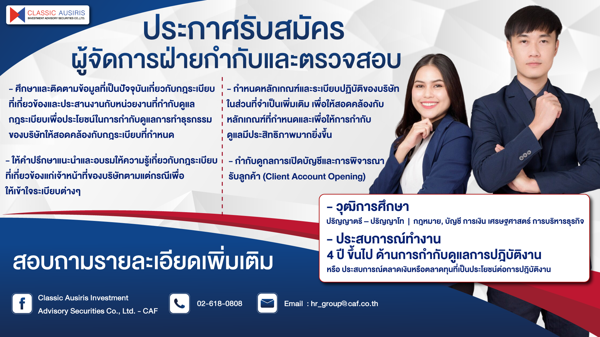 ประกาศรับสมัคร ผู้จัดการฝ่ายกำกับและตรวจสอบ