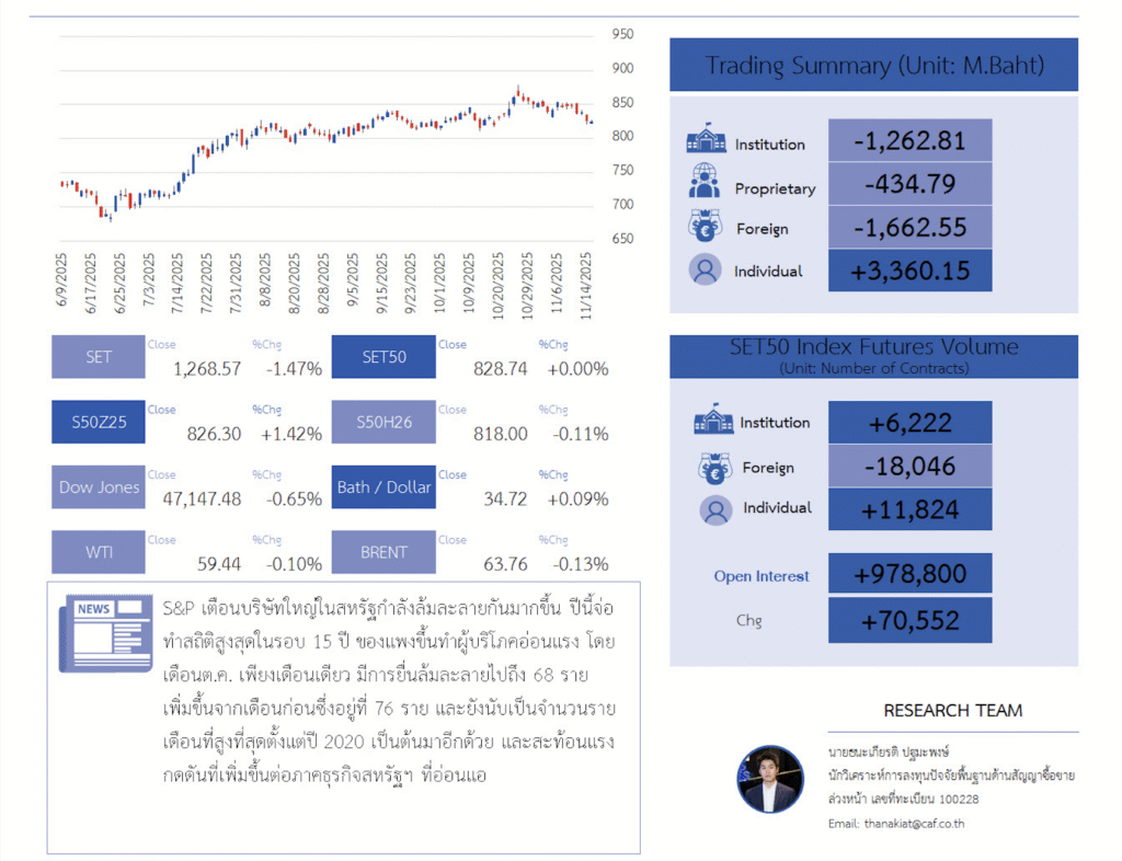 บทวิเคราะห์ SET50 Index Futures & Options | วันจันทร์ที่ 17 พฤศจิกายน พ.ศ. 2568